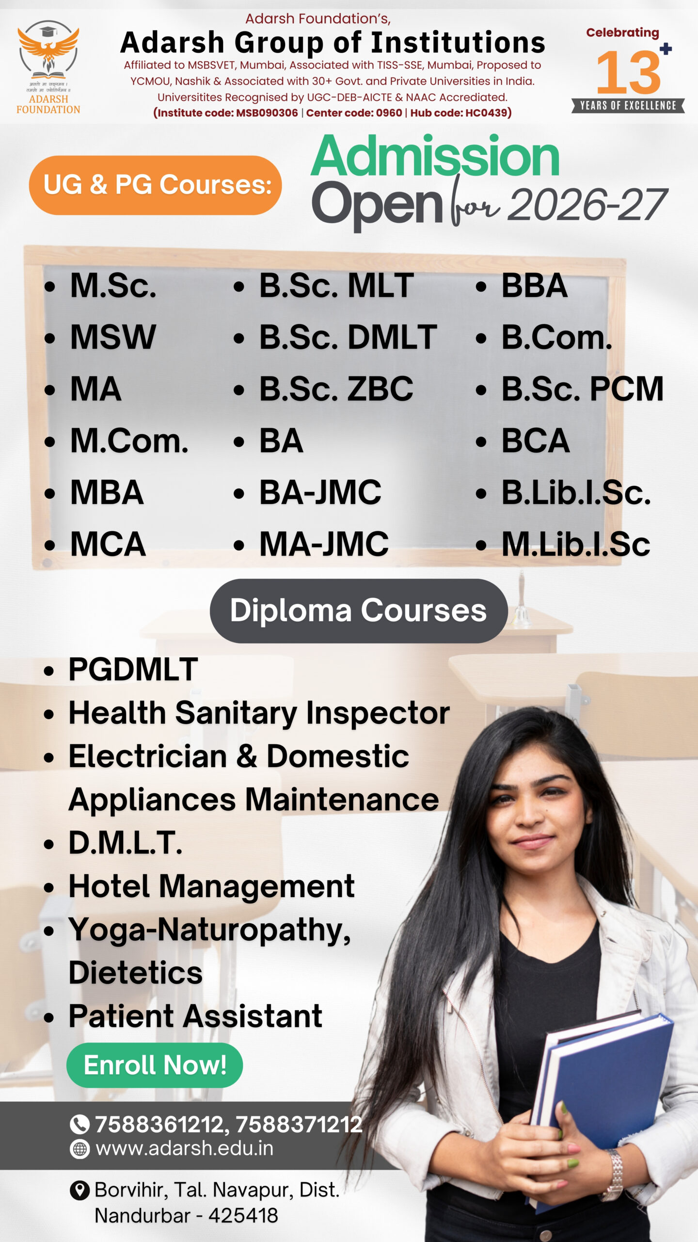 “I believe learning is the only tool for success of individual irrespective of the age. Adarsh Institute we are committed for betterment of society through development of student in every stage of his/her development.”